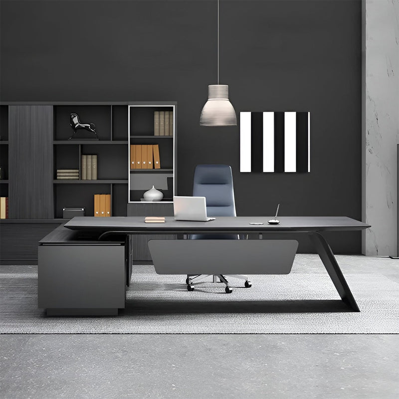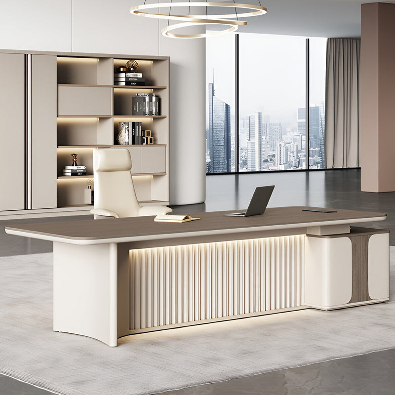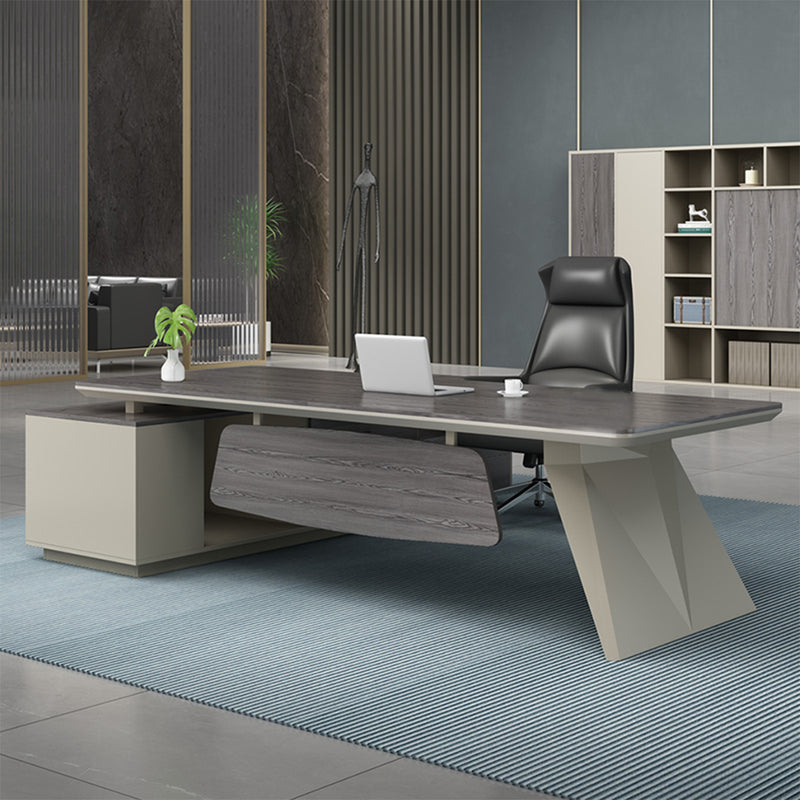 - 分厚い天板 R仕上げ 斜めカット エコ板材 安定性 大容量 デスク エグゼクティブ ワークデスク 木目調 上品 高級感 格調 ナチュラル カスタマイズ可能 LBZ-K-060