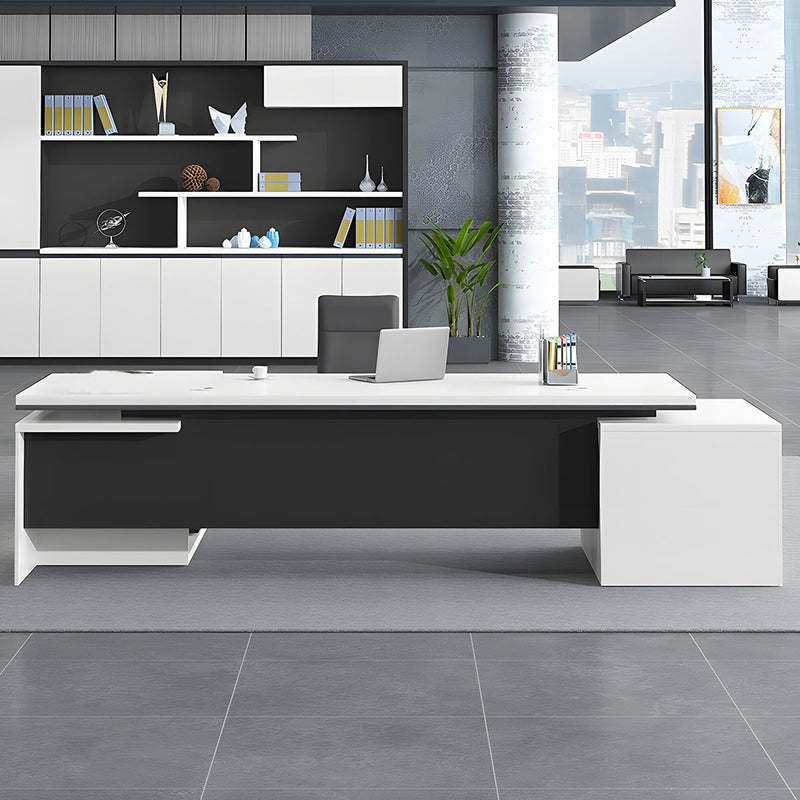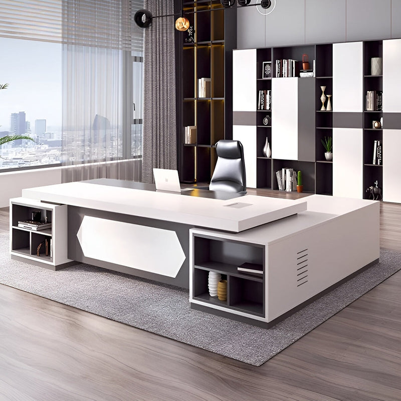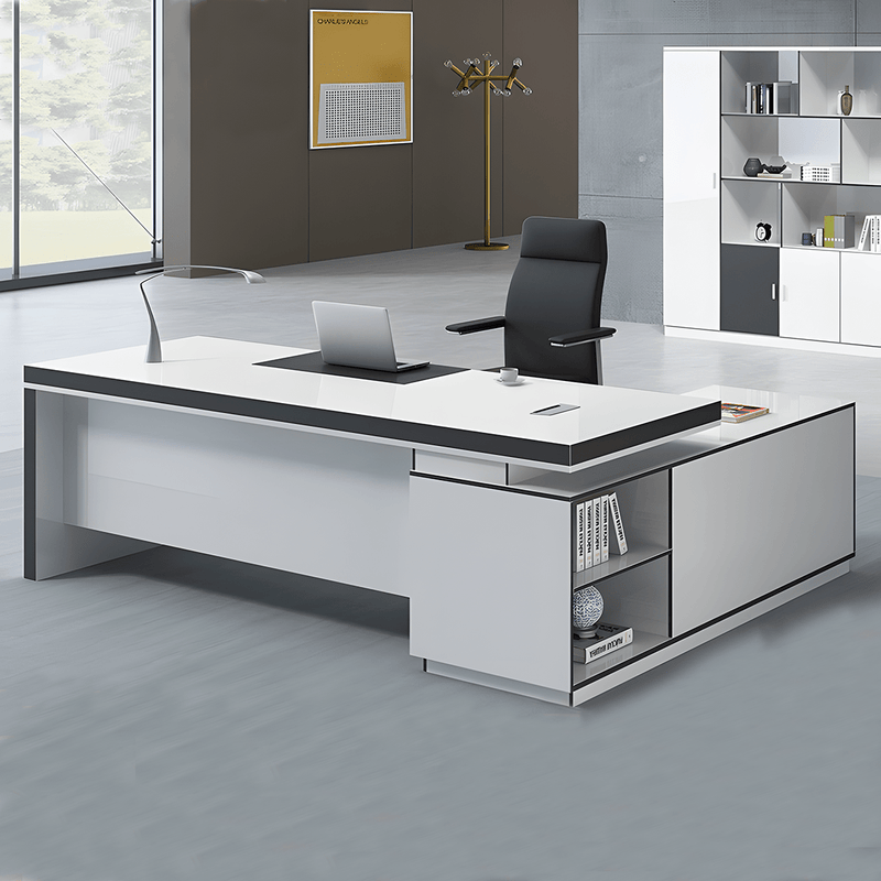 サイドキャビネット ロック付き アジャスター付き エグゼクティブデスク 社長机 オフィスデスク 作業台 事務机 PCデスク ホワイト シンプル LBZ-T010