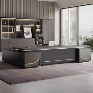 ワークデスク オフィスデスク 重役デスク L字デスク 木目調 大容量収納 キャビネット付き 幕板付き 鍵付き ブラック カスタマイズ可能 LBZ-M-082
