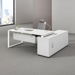 - キャビネット 多目的 金属フレーム 通気孔 幕板 配線ボックス デスク ワークデスク 役員デスク シンプル 洗練 機能的 ホワイト カスタマイズ可能 LBZ-K027