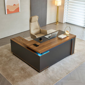 L字 幅広 分厚い天板 キャビネット 大容量 配線ボックス 通気孔 デスク 役員デスク エグゼクティブ 重厚 上質 機能的 カスタマイズ可能 LBZ-C062