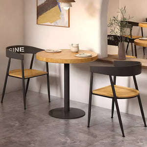- カフェ風応接セット コーヒーテーブル 店舗用 R仕上げ 円型テーブル 木目調 背もたれ ベース付き足 ロフア風 ナチュラル ブラック カスタマイズ可能 JDZH-M-032