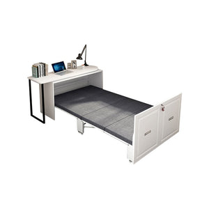 - 折りたたみベッド シングルベッド 折り畳みベッド ベッド コンパクト 鍵付き 静音キャスター 作業デスク 金属フレーム 多目的 ホワイト カスタマイズ可能 ZDC-K019