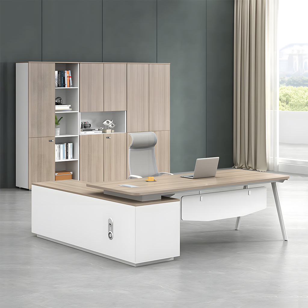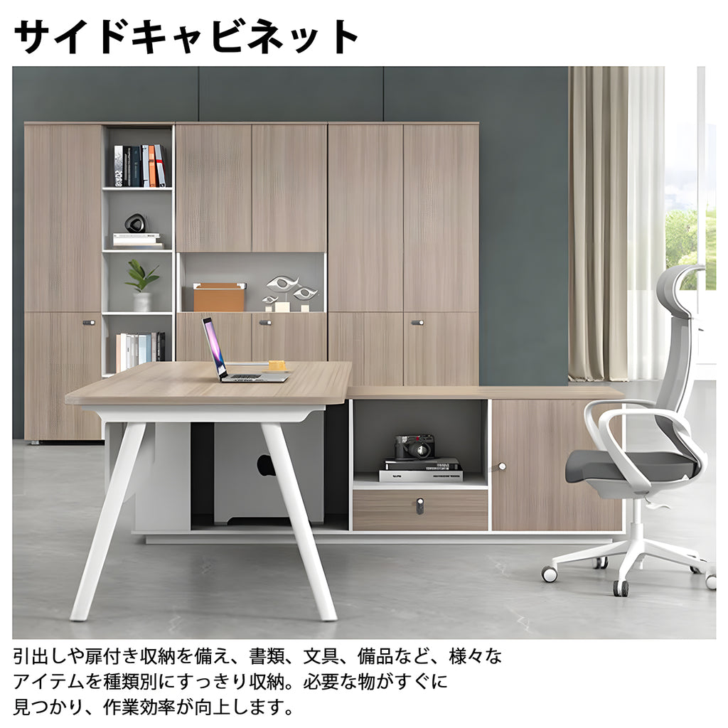 - オフィス 社長机 社長デスク 経営者用 サイド収納スペース 広々 配線ボックス シンプル 多機能 ナチュラル カスタマイズ可能 LBZ-K073