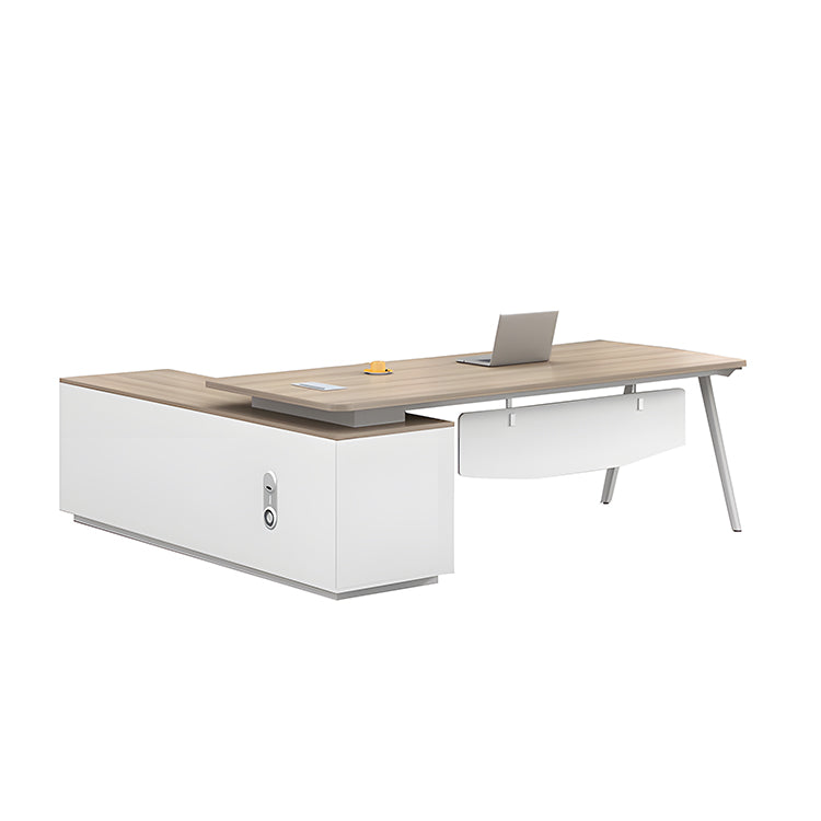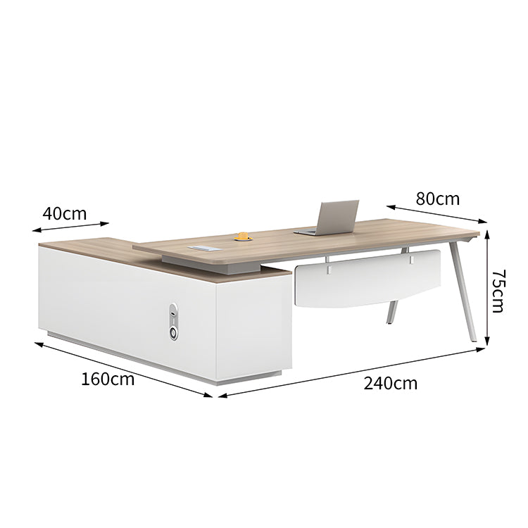 サイドキャビネット ロック付き アジャスター付き エグゼクティブデスク 社長机 オフィスデスク 作業台 事務机 PCデスク ホワイト シンプル LBZ-T010