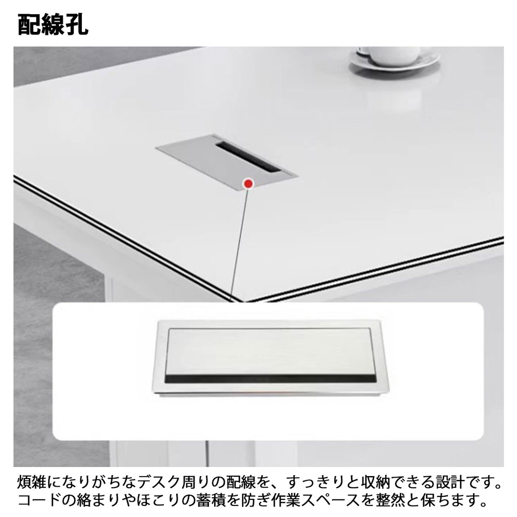 - オフィスデスク オフィス デスク 厚天板 配線孔 シンプル 実用的 エコ板材 可動式 収納 ホワイト LBZ-K076