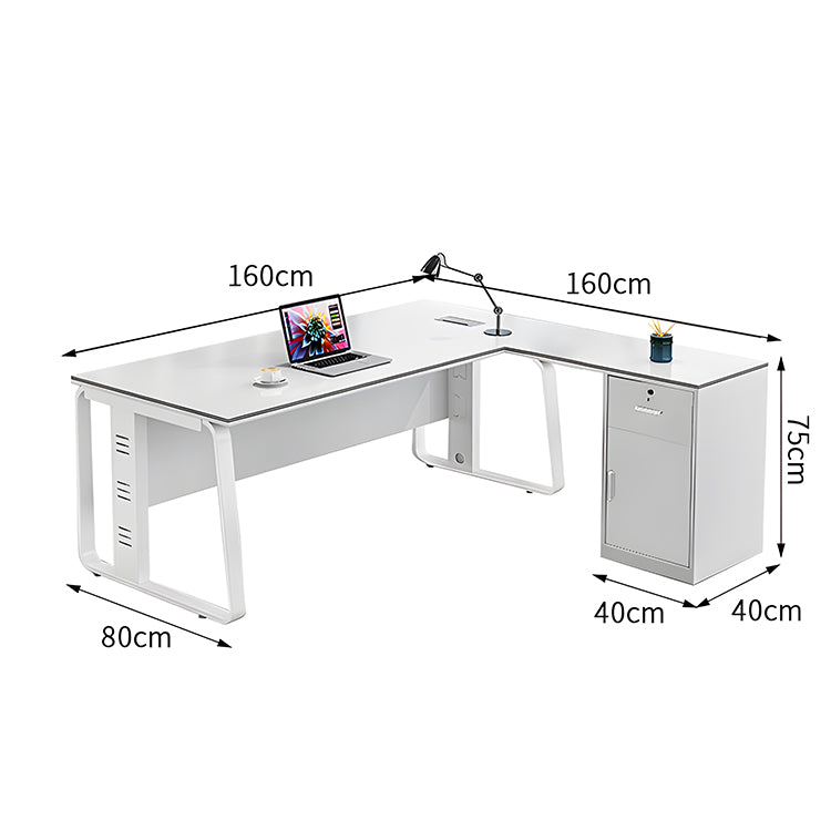 サイドキャビネット ロック付き アジャスター付き エグゼクティブデスク 社長机 オフィスデスク 作業台 事務机 PCデスク ホワイト シンプル LBZ-T010