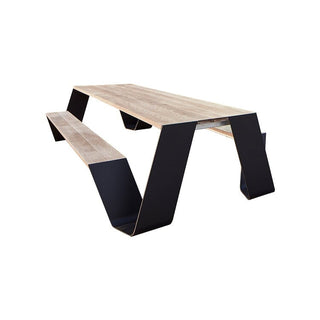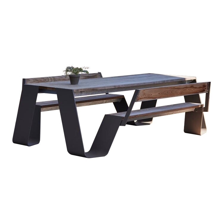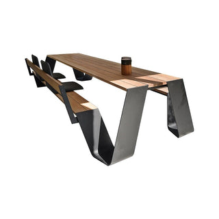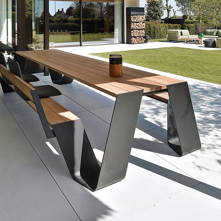 - ガーデンテーブル・ベンチセット 屋外家具 ガーデン家具 焼付塗装 天然木使用 チーク材 アルミ合金フレーム ブラック カスタマイズ可能 HWZY-M012