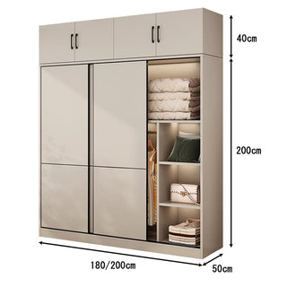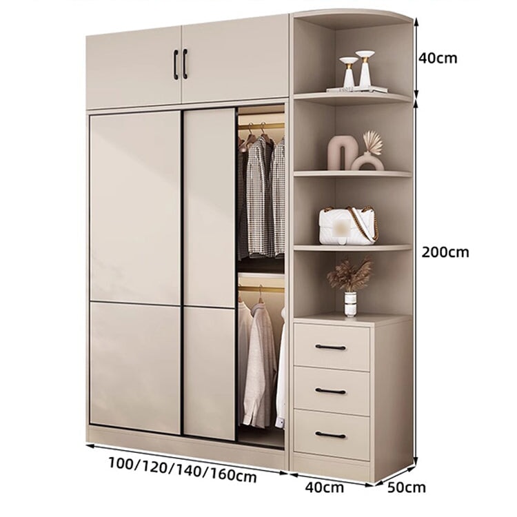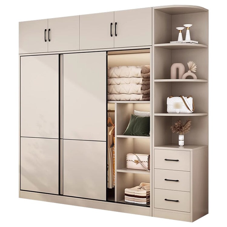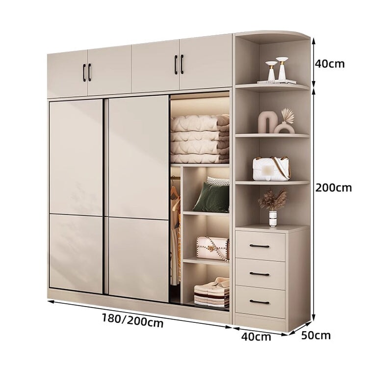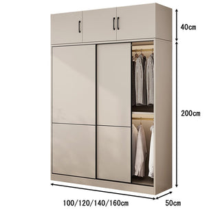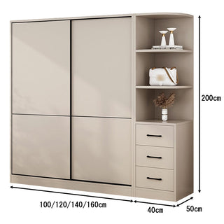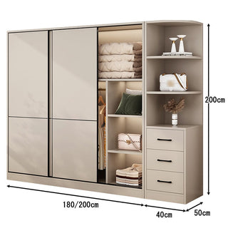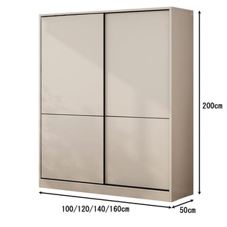 - クローゼット ワードローブ 服収納 壁面収納 大容量 多段式 分類収納 メラミン化粧板 エコ素材 引き違い戸 天然木 静音レール YG-M028