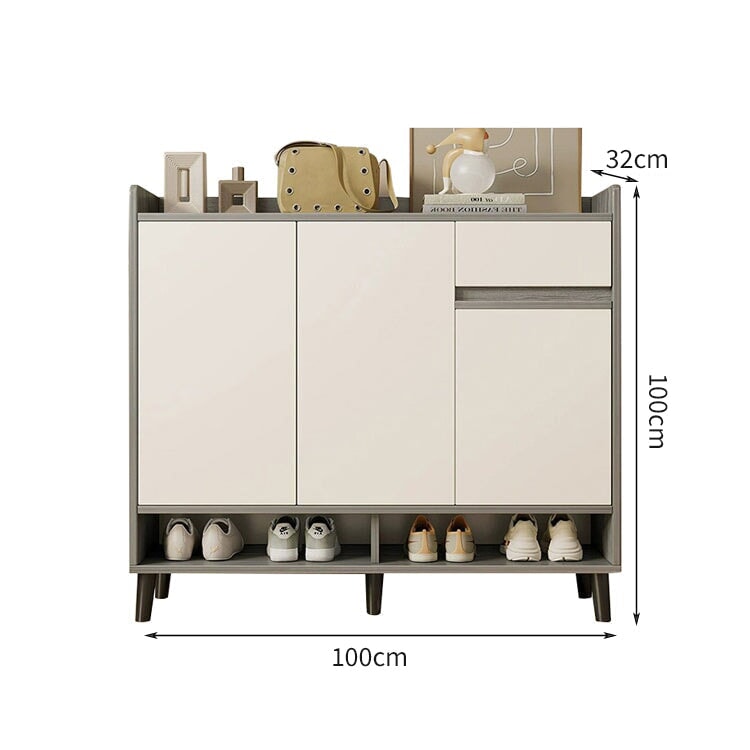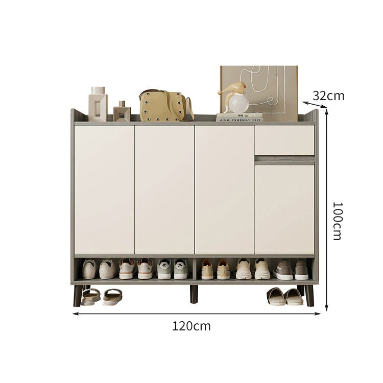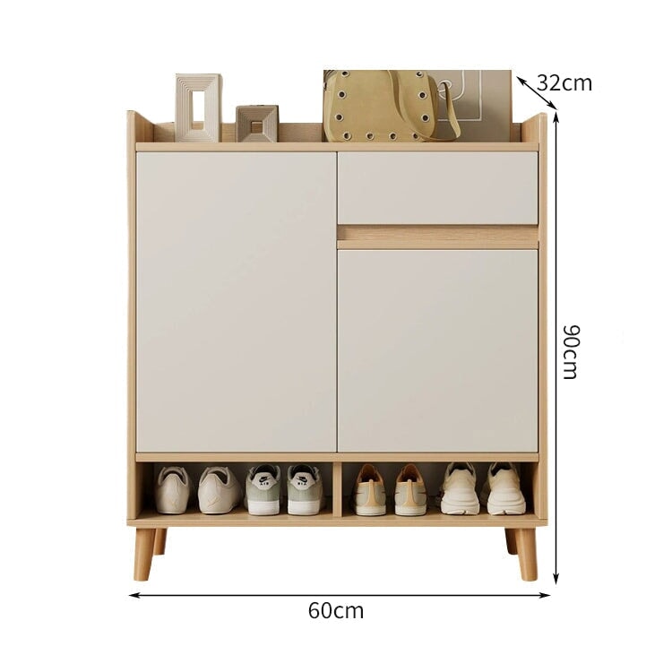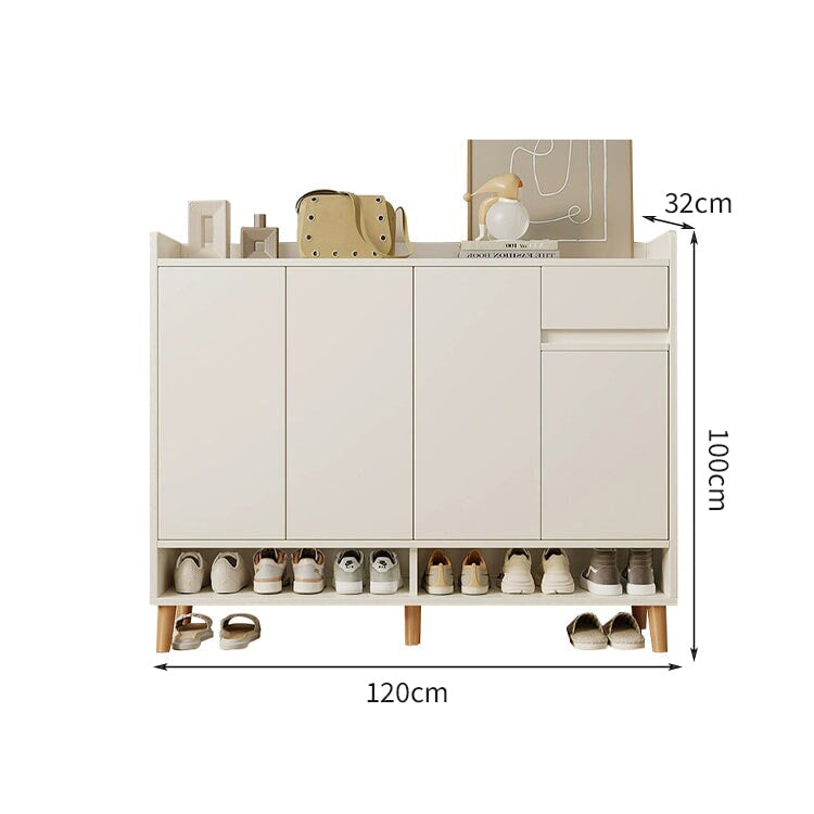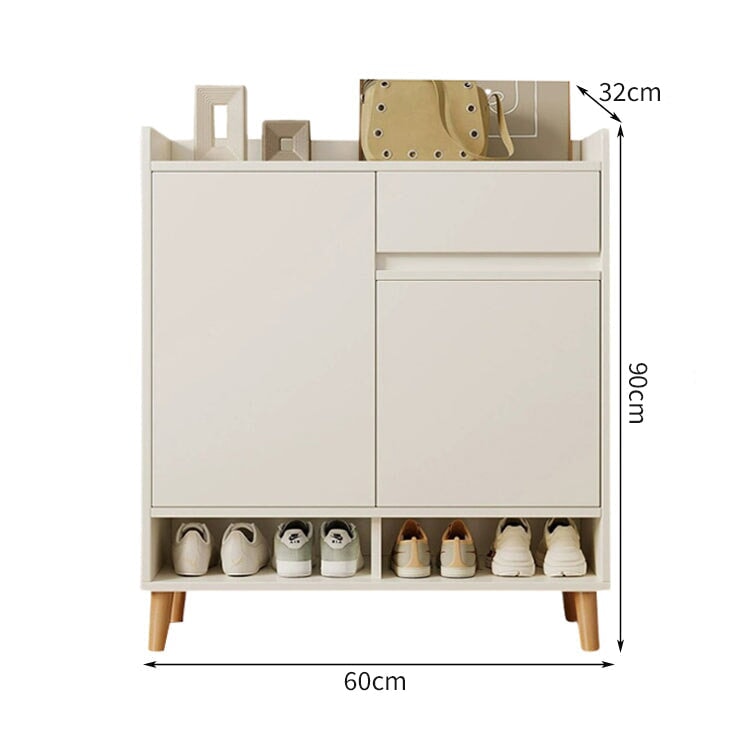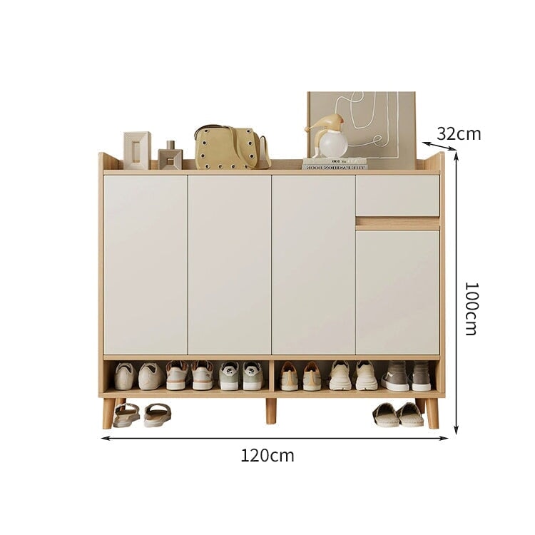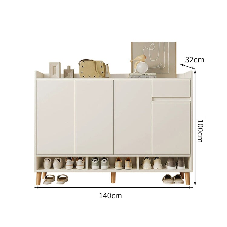 - メラミン化粧板 耐久性 プッシュオープン式扉 可動棚板 通気孔 蝶番 シューズボックス 下駄箱 靴収納 木目調 ナチュラル 実用 ホワイト XG-C008