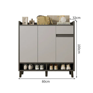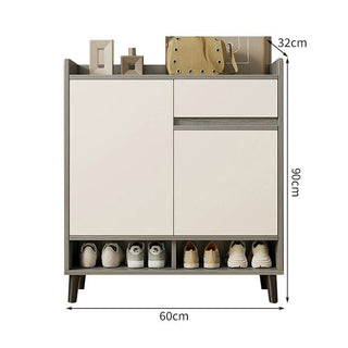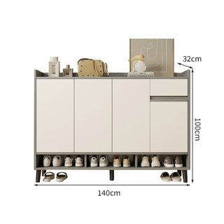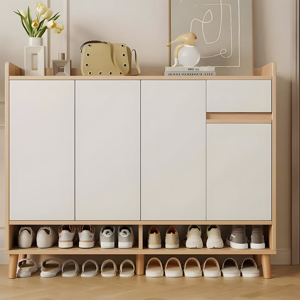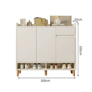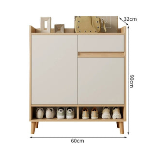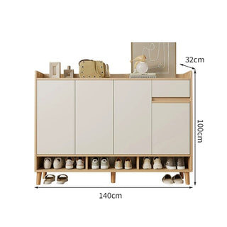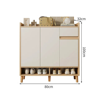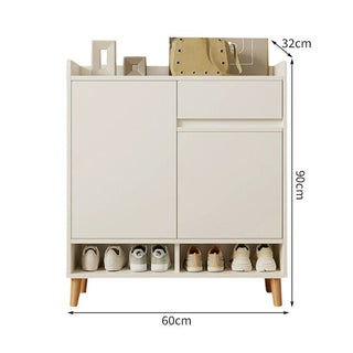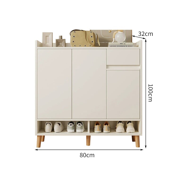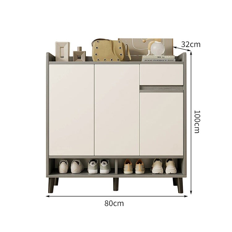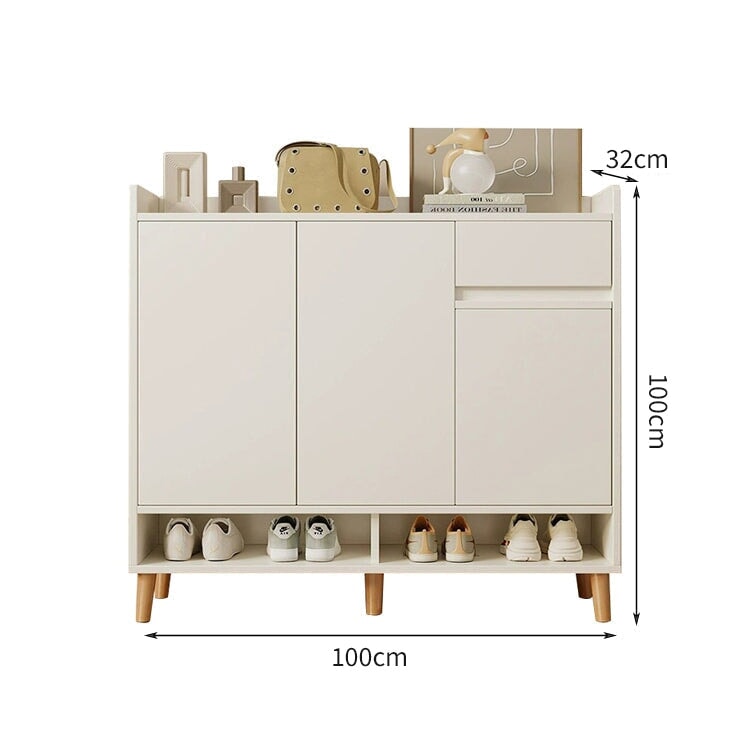 - メラミン化粧板 耐久性 プッシュオープン式扉 可動棚板 通気孔 蝶番 シューズボックス 下駄箱 靴収納 木目調 ナチュラル 実用 ホワイト XG-C008