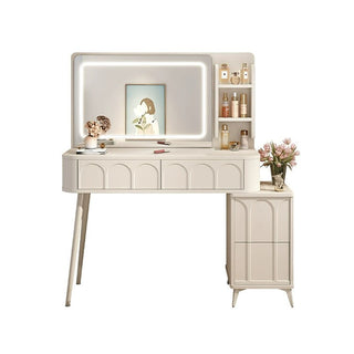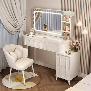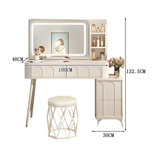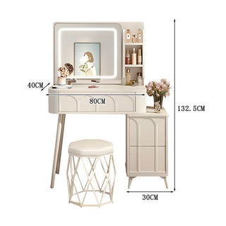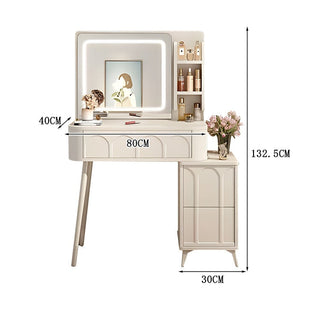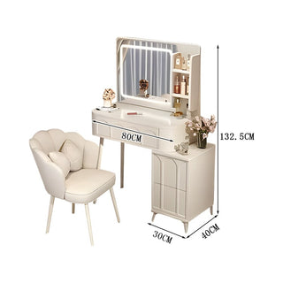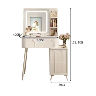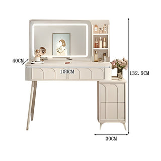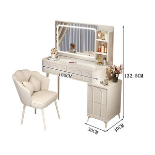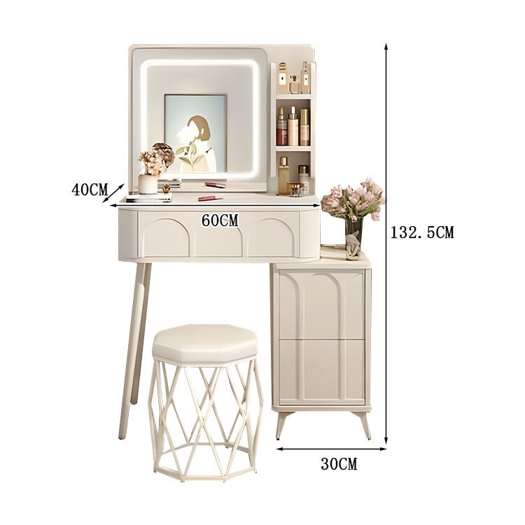 - ドレッサー 鏡台 ミラー 鏡 LED 照明 プッシュオープン 収納棚 引き出し 伸縮可能 エレガント かわいい HZT-C024