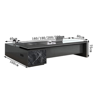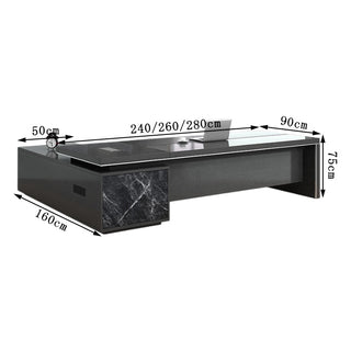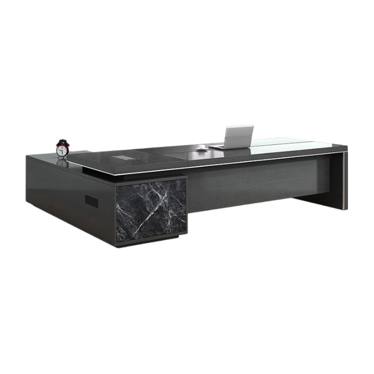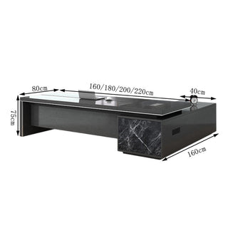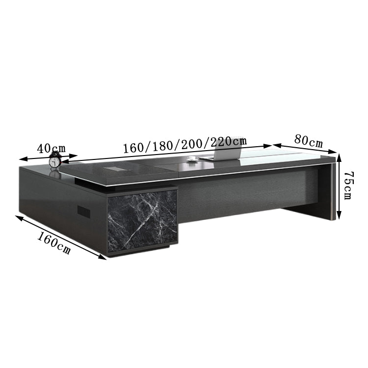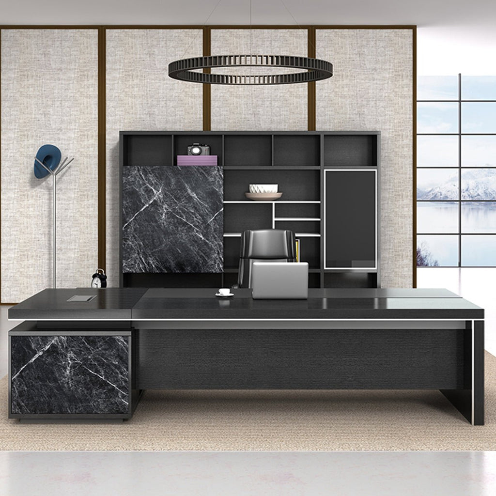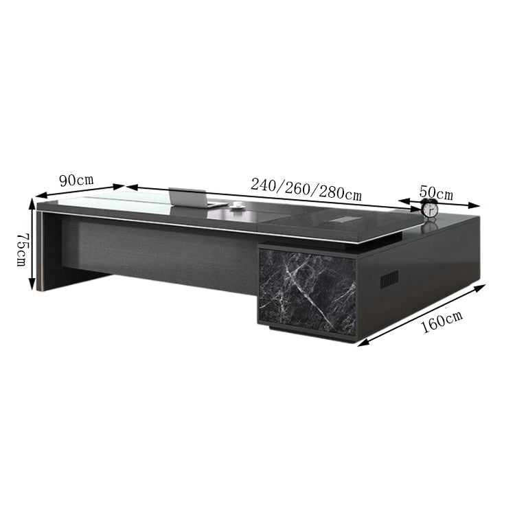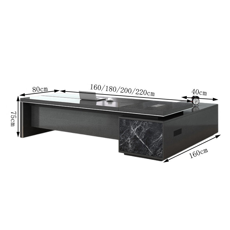- パソコンデスク 事務机 オフィスデスク エグゼクティブデスク プレジデントデスク 役員室用 引き出し 配線ボックス L字天板 重厚感 ブラック マーブル カスタマイズ可能 LBZ-S020