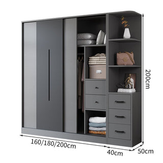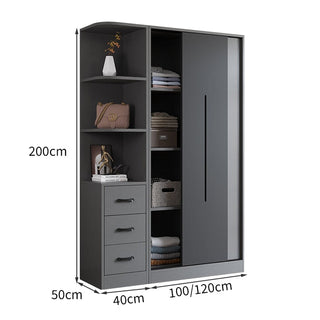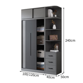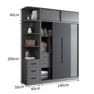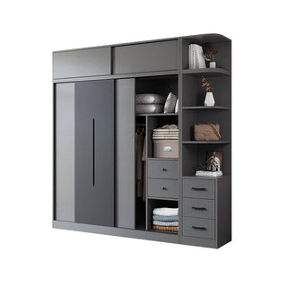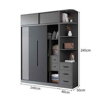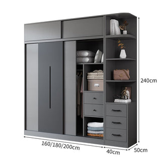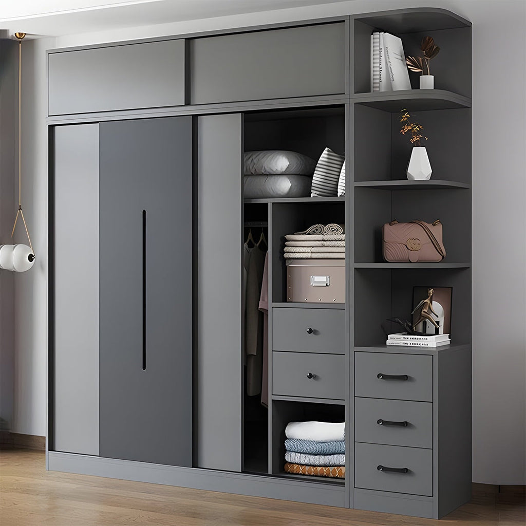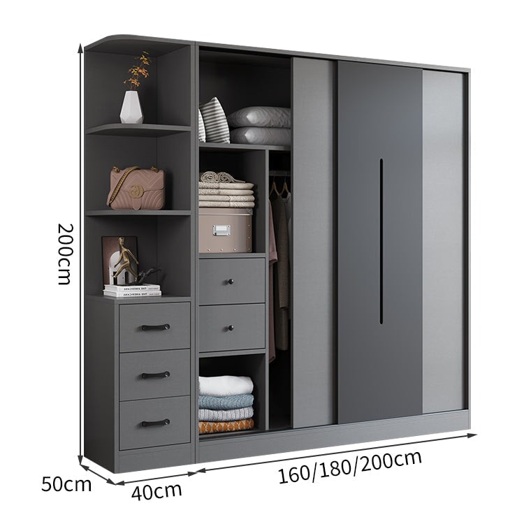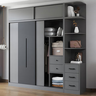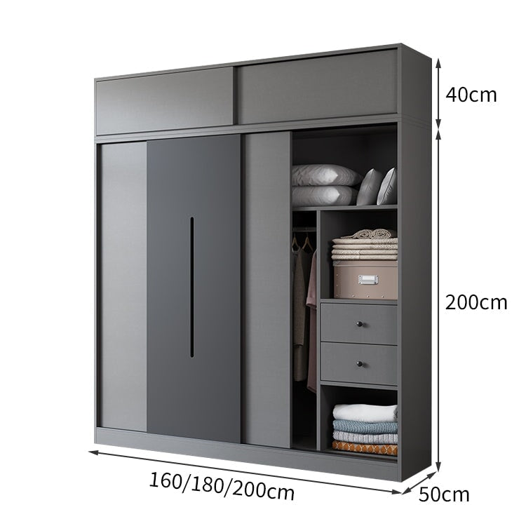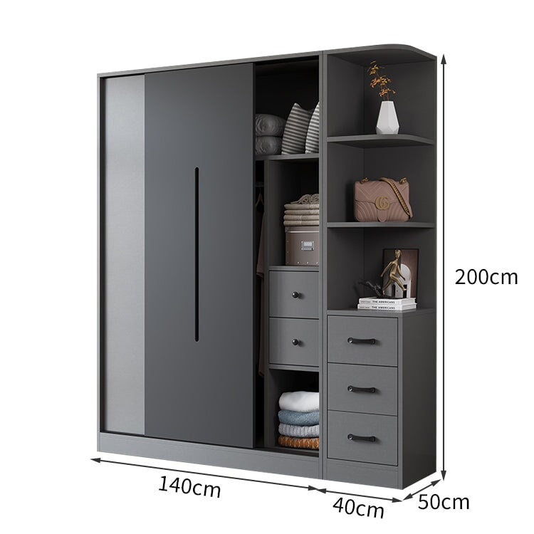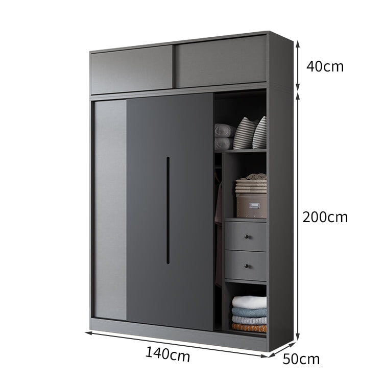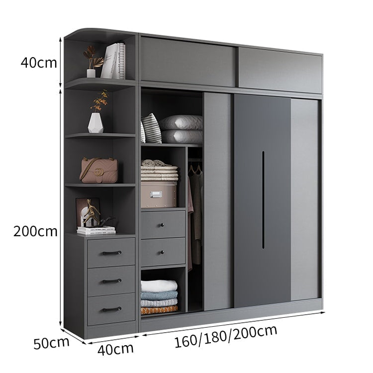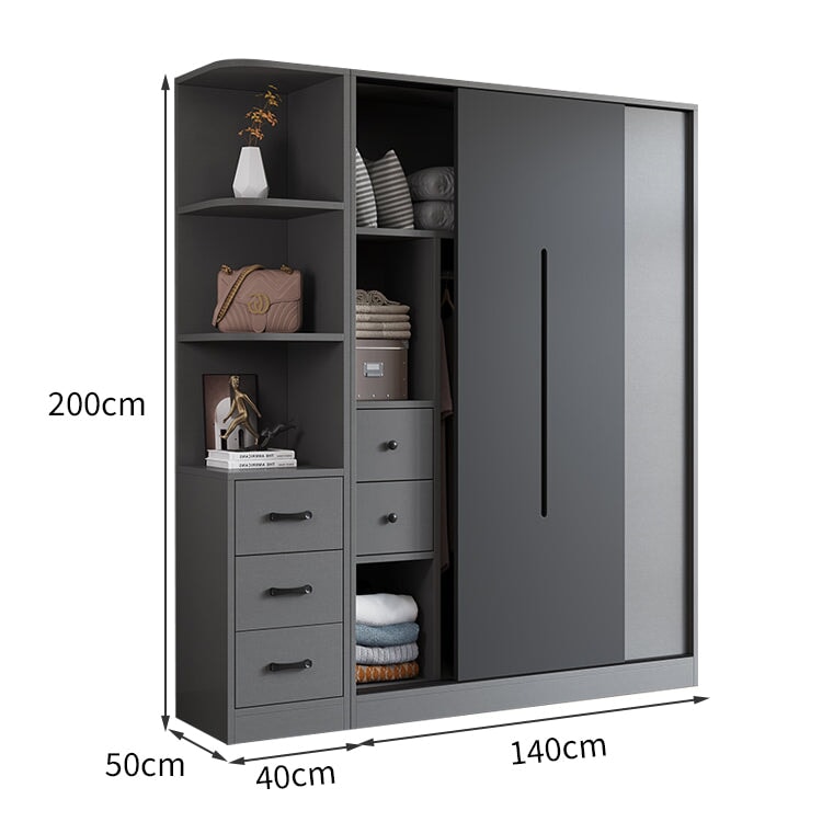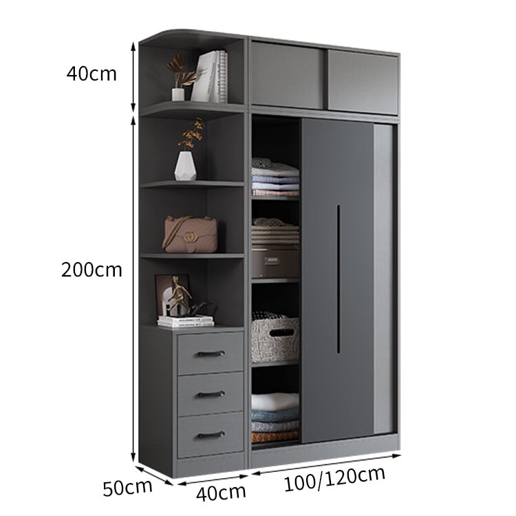 - 上置き収納 かける収納 引き出し 分類収納 大容量 物干し竿 台輪 安定性 クローゼット 壁面収納 ワードローブ 洗練 すっきり 実用 便利 グレー YG-C010