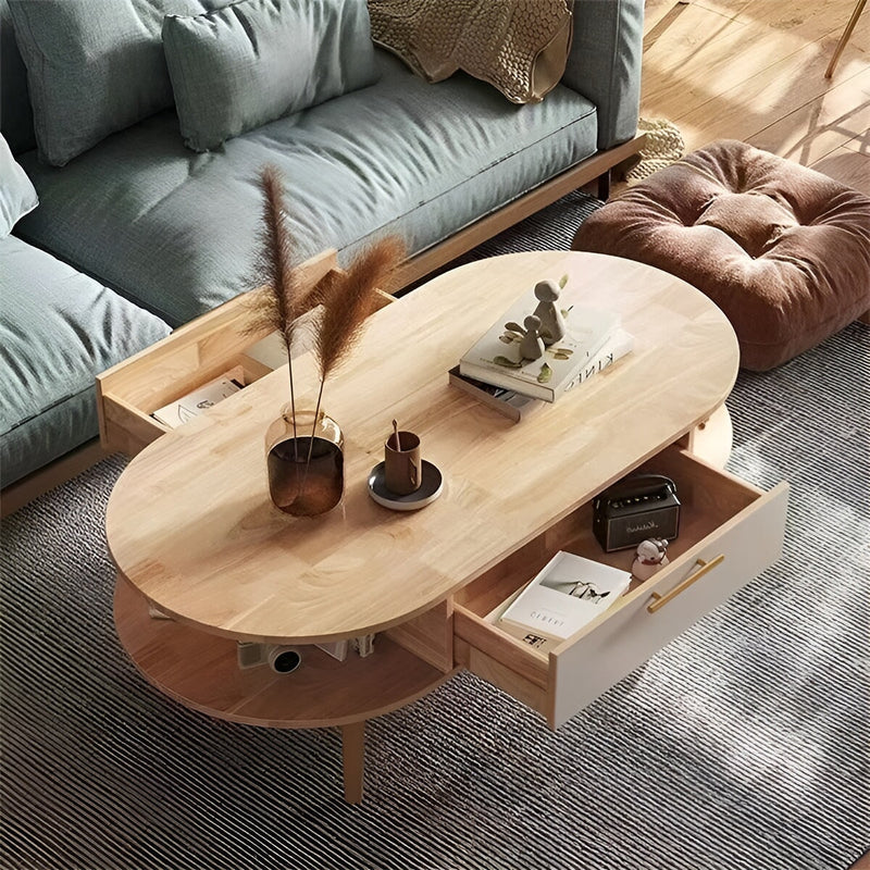無垢材 リビングルーム 楕円形 組み合わせ サイドテーブル CZ-K-013