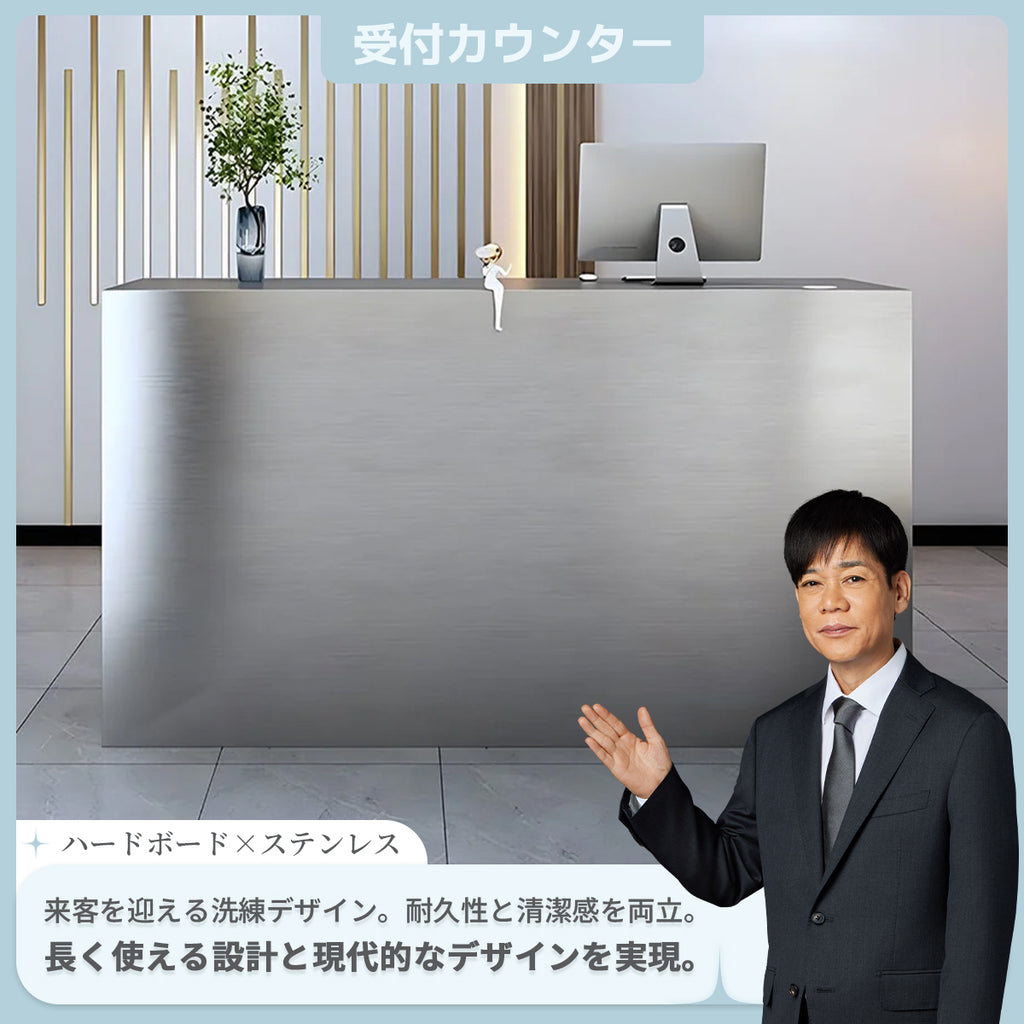 - ステンレス鋼 ヘアライン仕上げ オシャレ シンプル 実用 受付カウンター レジカウンター レジ台 フロント カスタマイズ可能 JDT-K099