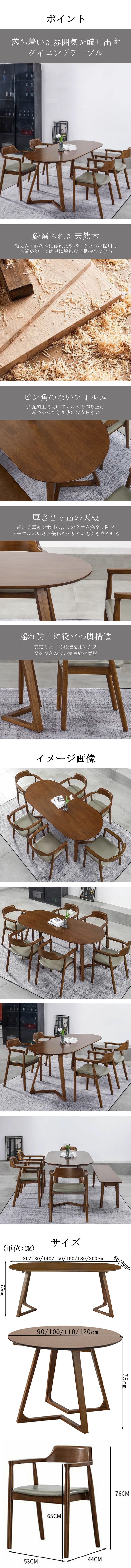 - ダイニングテーブル テーブル ダイニング 食事用 天然木 ラバーウッド ピン角なし 角丸加工 厚み 丈夫 三角構造 安定性 落ち着き 木目調 上質 カスタマイズ可能 CZ-K080