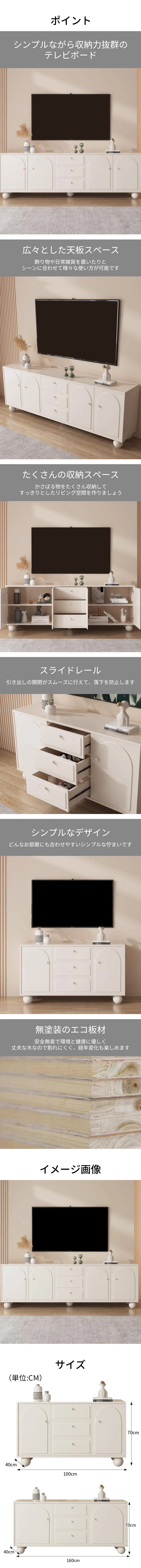 テレビ台 テレビボード TV台 リビング 広い天板 扉付き収納 スライドレール 分類収納 無塗装 エコ板材 簡素 シンプル 大容量 使い勝手 ホワイト カスタマイズ可能 DSG-K007