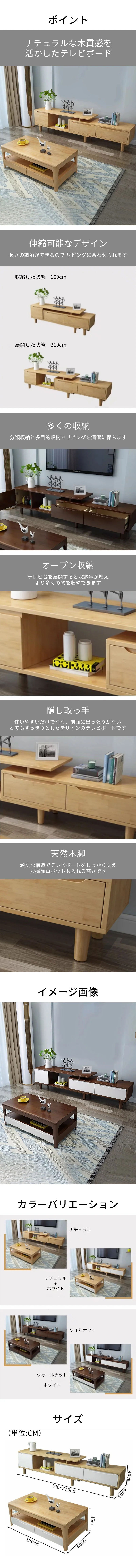 テレビ台 ローボード テレビボード リビング用 伸縮可能 収納 大容量 多目的 オープン式 扉付き 天然木 取っ手 木質感 簡素 上質 ナチュラル DSG-K005