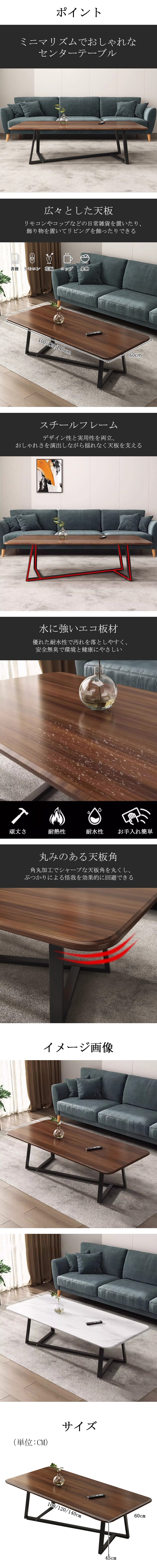 - テーブル センターテーブル 茶テーブル リビング 広い天板 スチールフレーム 頑丈 安定性 エコ板材 耐水性 角丸加工 ミニマル おしゃれ SNZ-C029