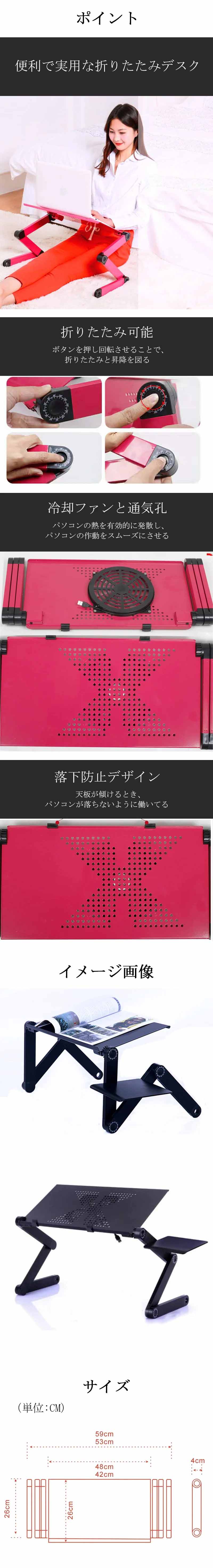 デスク 小型デスク パソコンデスク インドアデスク ベッド上 パソコン用 折りたたみ 昇降可能 冷却ファン 通気孔 コンパクト 省スペース 便利 ブラック SJZ-K003