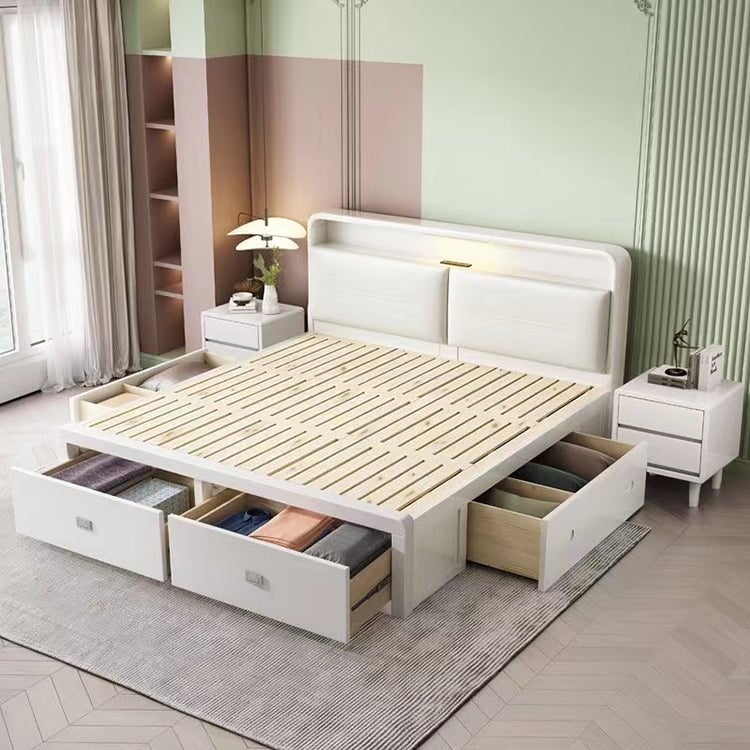 無垢材 モダンシンプル 主寝室 ダブル クッション 新婚用 ベッド BED-K-064