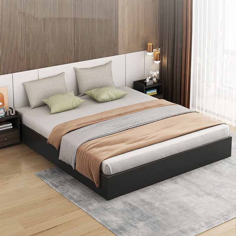- ベッド ローベッド キングサイズ 二人用 跳ね上げ式 収納 大容量 カウレザー すのこ ヘッドボードクッション 柔らか 上質 おしゃれ ブラック カスタマイズ可能 BED-K020