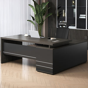 - エグゼクティブデスク 役員テーブル オフィスデスク 社長デスク サイドキャビネット 引き出し 配線ボックス 快適 ナチュラル ウォールナット LBZ-M080