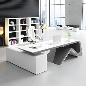 - エグゼクティブデスク 役員デスク ワークデスク 社長デスク デスク 鏡面仕上げ 配線ボックス サイドキャビネット おしゃれ ホワイト カスタマイズ可能 LBZ-K001
