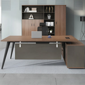 - スチールフレーム 耐荷重 安定性 サイドキャビネット 大容量 多目的 幕板 配線ボックス メラミン化粧板 デスク エグゼクティブ 役員デスク 洗練 機能的 穏やか ブラウン LBZ-K-003