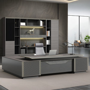- サイドキャビネット 2つ 大容量 分類収納 多目的 配線ボックス 幕板 エッジ加工 デスク エグゼクティブ 役員デスク 落ち着き 高級感 上品 グレー カスタマイズ可能 LBZ-K-009