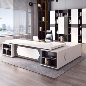 - エグゼクティブデスク L字デスク 社長机 配線ボックス付き 多目的キャビネット付き ダイヤル錠付き 通気口付き シンプル グレー カスタマイズ可能 LBZ-K-055