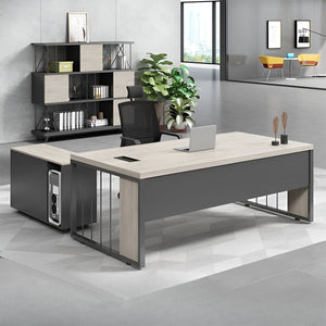 - 配線ボックス キャビネット 大容量 幅広 厚い天板 幕板 デスク 役員デスク エグゼクティブ 金属フレーム 多目的 落ち着き 洗練 実用 ウォールナット カスタマイズ可能 LBZ-K005