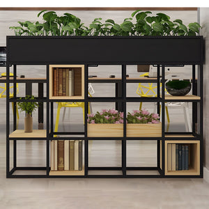 - パーテーション オフィスラック シンプル 店舗用 天然木製 焼付塗装 アイアン製 収納スペース付き モダン ブラック ナチュラル カスタマイズ可能 BGGB-M-014