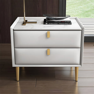 - 金属脚 頑丈 ゴールド 引き出し 卓上スペース 面取り加工 革張り なめらか サイドテーブル ナイトテーブル マーブル柄 おしゃれ 実用 モダン ホワイト CTZ-K-003