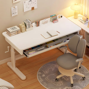 - 子供用 天然木 高さ調節可能 スチールフレーム エコ素材 学習デスク 使い勝手 ホワイト 学習机 DESK-K-009