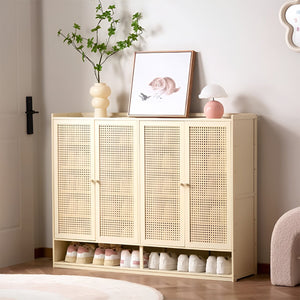 - 大容量 多段式 分類収納 可動棚板 ラタン編み 通気性 モウソウチク 頑丈 下駄箱 シューズボックス 玄関用 簡素 実用 シンプル ナチュラル CWG-K082