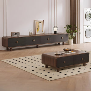 - 引き出し 分類収納 エコ板材 頑丈 R仕上げ 配線孔 天然木脚 バイカラー テレビボード テレビ台 センターテーブル 木目調 落ち着き 実用 ホワイト ブラック カスタマイズ可能 DSG-K018