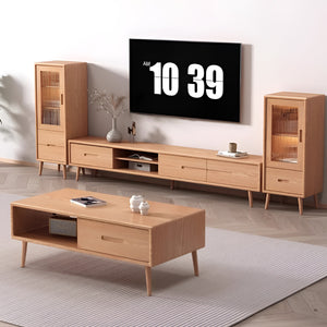 木目調 ナチュラル 穏やか 天然木 耐久性 引き出し オープン収納 分類収納 R仕上げ 八の字構造 安定性 テレビ台 テレビボード TV台 DSG-K037
