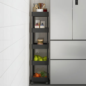 - キャビネット 隙間収納ワゴン キッチンワゴン オフィスキッチ 食器棚 キャスター付きワゴン (ブラック、5段式、22cm) 大容量 キャスター付き シンプル ブラック CFSN-M-004-08-kc