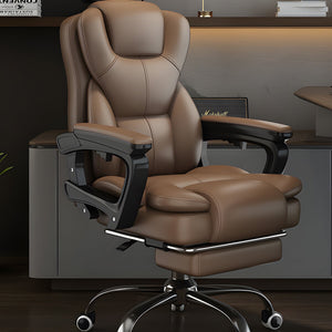 - オットマン付きチェア エグゼクティブチェア ワークチェア ウレタン ポリエステル 足置き 連動式アームレスト 贅沢感 ブラウン LBY-M004