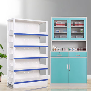 - 薬局用薬品棚 医療用キャビネット 医薬品棚 薬局 PUレザー スチール製 冷間成形鋼 シリンダー錠付き 可動棚板 ホワイト カスタマイズ可能 YLGZ-M-008