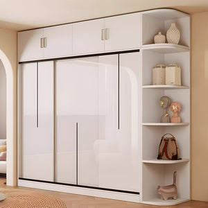 - 衣類収納ユニット クローゼットキャビネット 衣類整理スペース クローゼット 壁面収納 ワードローブ 洋服収納 エコ素材 分類収納 大容量 サイドキャビネット 引き違い戸 YG-S009