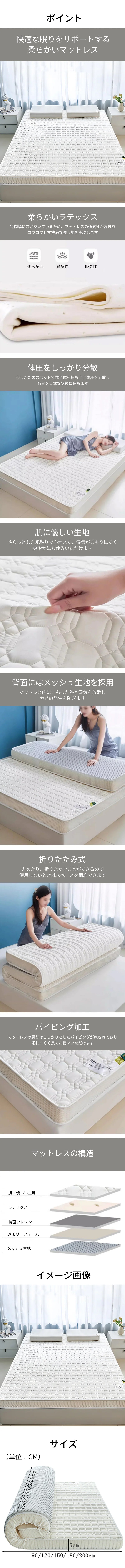 - マットレス 寝具 キングサイズ 二人用 ラテックス 通気性 蒸れにくい 体圧分散 メッシュ 折りたたみ可能 パイピング加工 メモリーフォーム 柔らか 快適 CD-K003