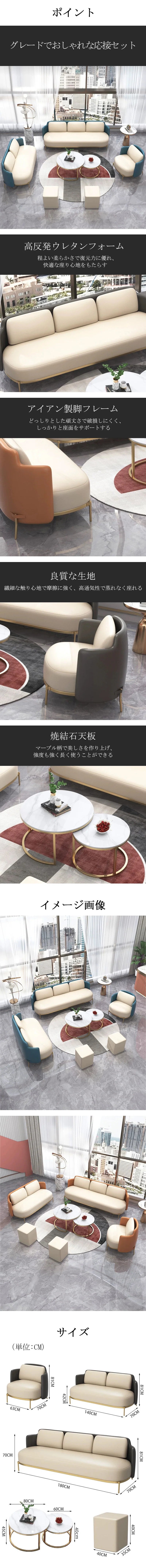 受付ソファー リビングソファー テーブル 応接セット ウレタンフォーム アイアン製脚 焼結石 マーブル柄 おしゃれ ベージュ カスタマイズ可能 JDZH-K007