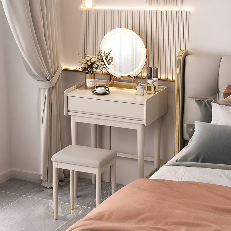 焼付塗装 転び止めバー H字型脚 安定性 引き出し 大容量 R仕上げ ドレッサー デスク 鏡台 シック モダン 上質 ベージュ ホワイト HZT-K041