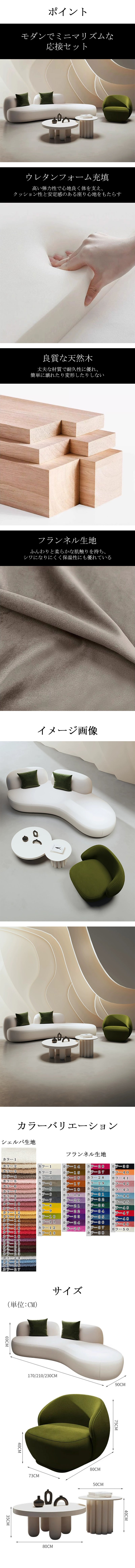 - 応接セット 応接 ソファー テーブル セット ウレタン 弾力性 クッション性 心地よい 天然木 フランネル ふんわり 柔らか 上質 モダン ミニマル カスタマイズ可能 JDZH-K021
