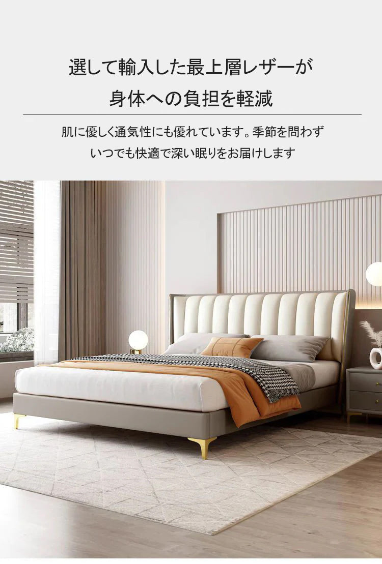 - 手の届く贅沢 シンプル モダン 主寝室 タイニーハウス 新婚用 ダブル 柔らかい 無垢材 トップレイヤーレザー ベッド BED-K-023