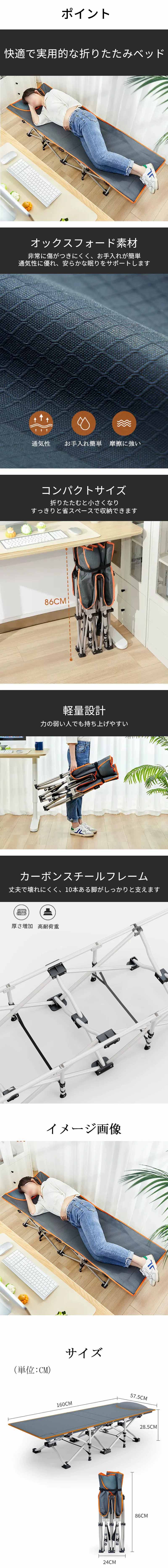 - 折りたたみベッド シングルベッド 折り畳みベッド パイプベッド ベッド コンパクト 省スペース 炭素鋼フレーム オックスフォードクロス グレー ZDC-K016