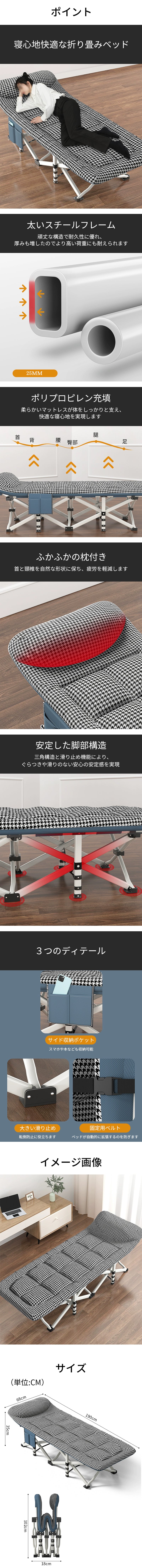 - 折りたたみベッド シングルベッド 折り畳みベッド パイプベッド ベッド スチールフレーム ポリプロピレン 枕付き 滑り止め サイド収納袋 ピンク ブラック ZDC-K012
